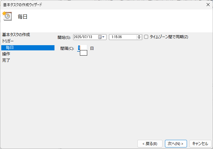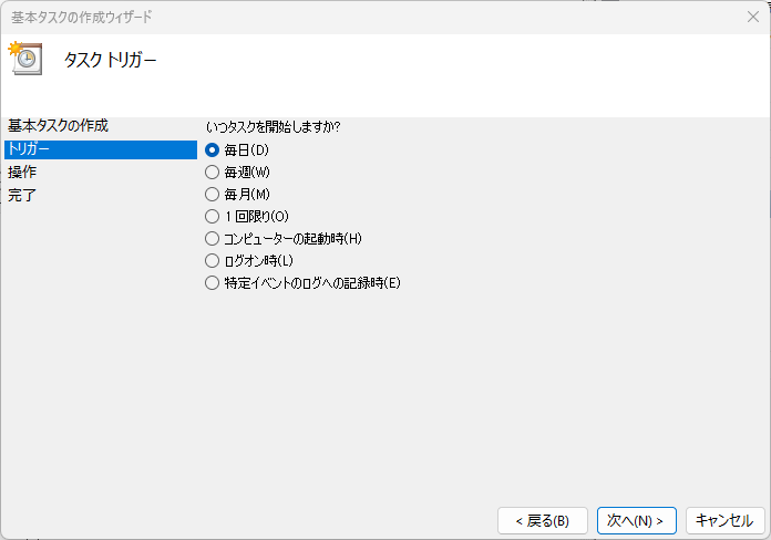 5. タスクトリガーでは、実行スケジュールを指定